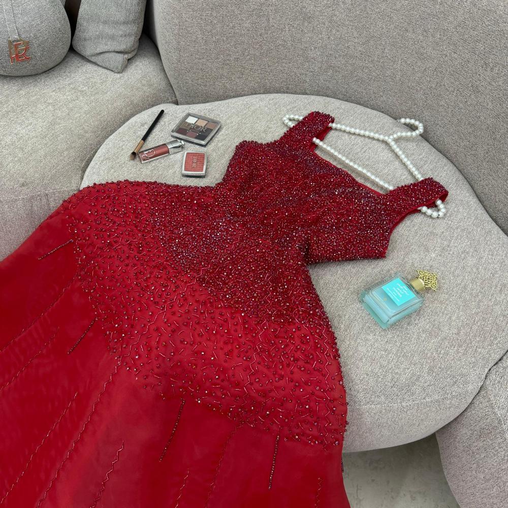 فستان ملكة تطريز يدوي عودي - تصميم ملكي راقي - إطلالة متألقة